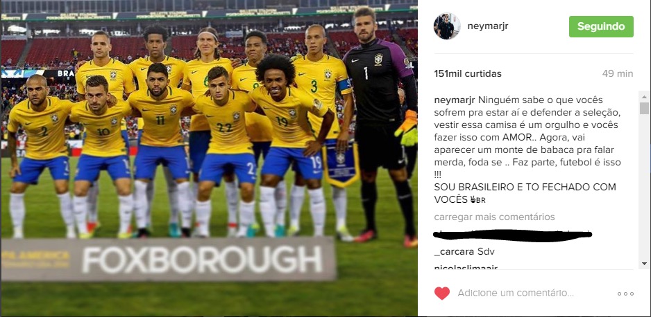 ATUALIZAÇÃO ÀS 21h10h de 14/6: Neymar pediu desculpas hoje. Estão aceitas.