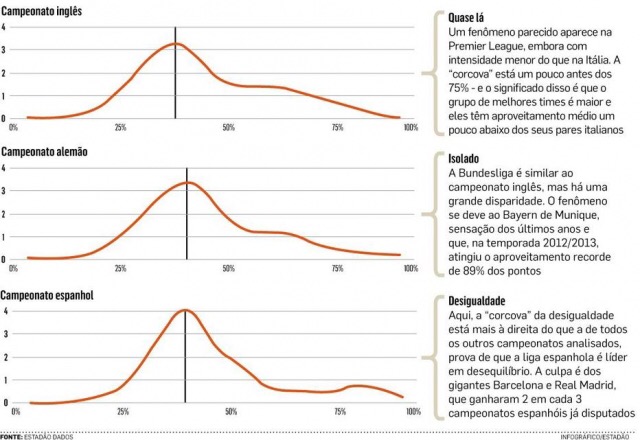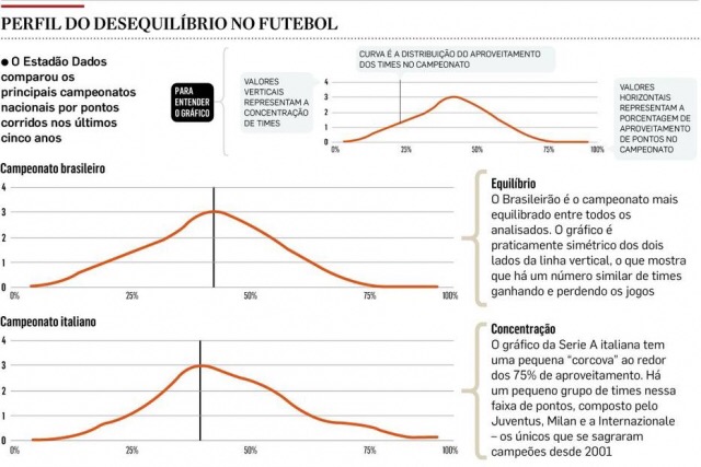 O equilíbrio nos campeonatos nacionais de pontos corridos para cada país foi calculado pelo Estadão Dados a partir de um estudo preliminar do economista do Banco Mundial Branko Milonovic. Para isso, foi utilizado o conceito de "taxa de aproveitamento", que corresponde ao número de pontos conquistados por um time dividido pelo total de pontos possíveis.