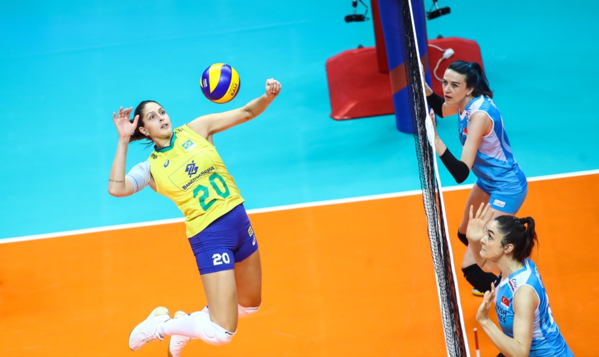 Está 2 a 1 para as turcas, em Ankara, Turquia, com 10 a 6 para o Brasil no quarto set.